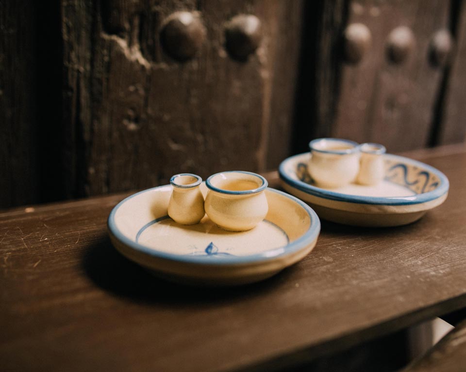 La colección Siglo XVII está inspirada en la cerámica tradicional que se realizaba en Baeza durante el siglo XVII. Recupera tanto los tonos en blanco roto y decoración en cobaltos aguados, como las formas singulares de la época. La colección se ha ampliado con piezas actuales además de las reproducidas desde sus originales para ofrecer una gama de productos más completa. Realizada a mano.