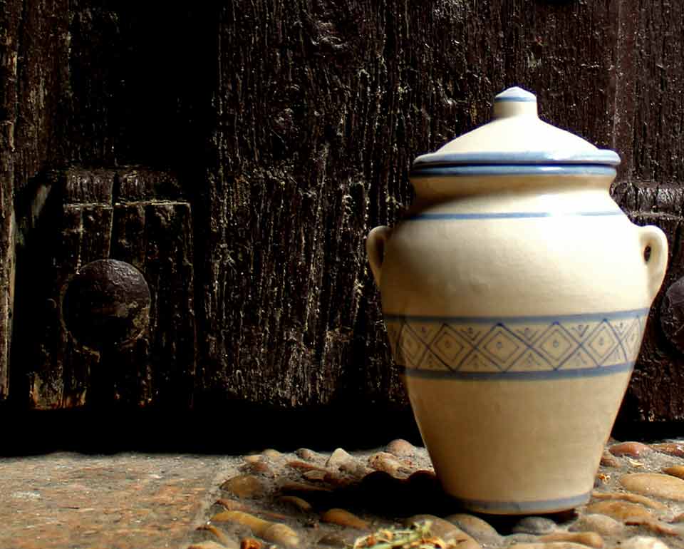 Orza de cerámica tradicional. Utilizada para realizar conservas en aceite.