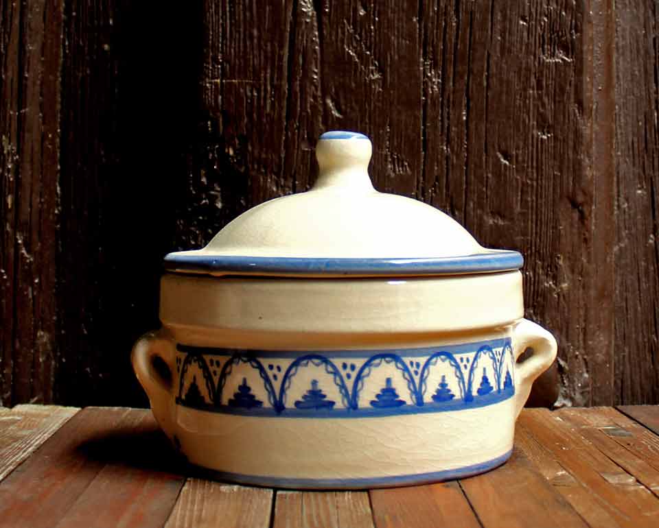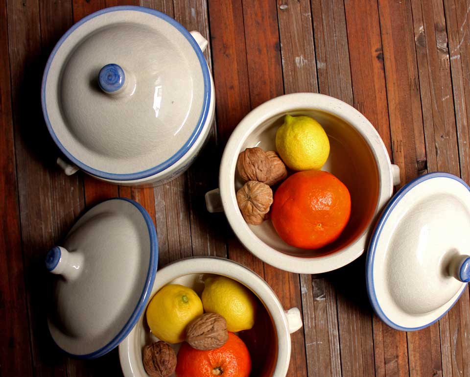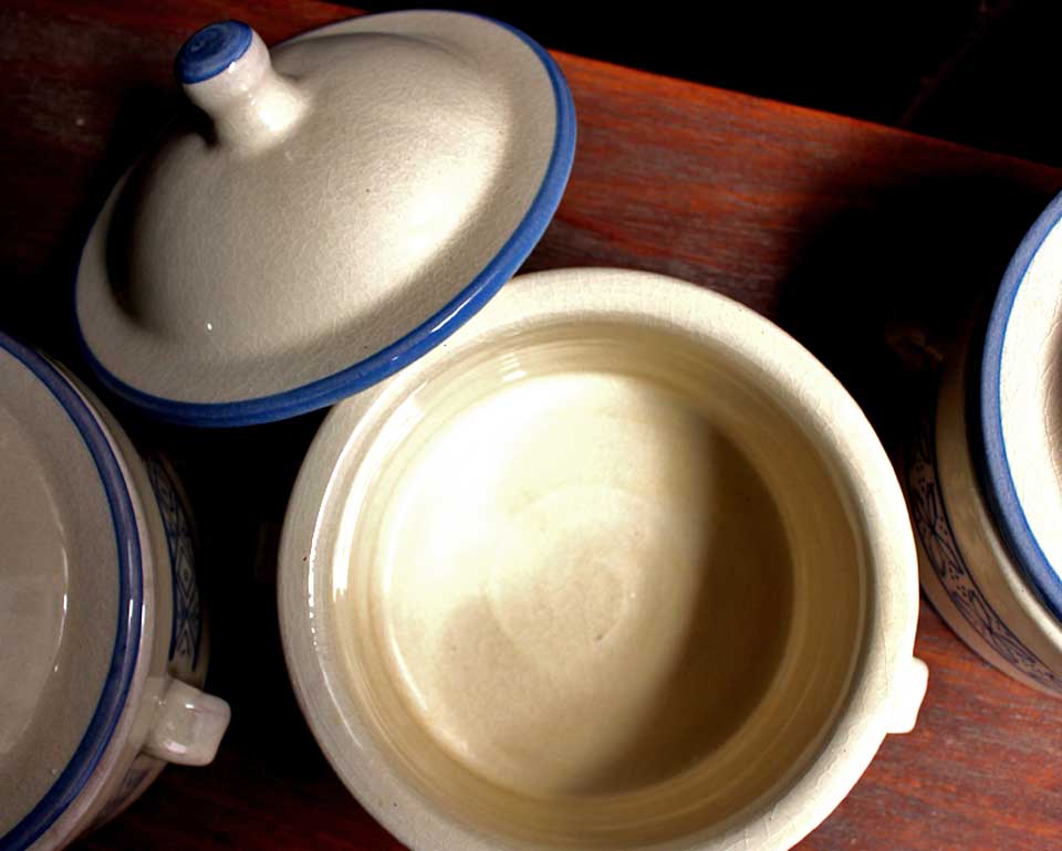 La colección Siglo XVII está inspirada en la cerámica tradicional que se realizaba en Baeza durante el siglo XVII. Recupera tanto los tonos en blanco roto y decoración en cobaltos aguados, como las formas singulares de la época. La colección se ha ampliado con piezas actuales además de las reproducidas desde sus originales para ofrecer una gama de productos más completa. Realizada a mano.